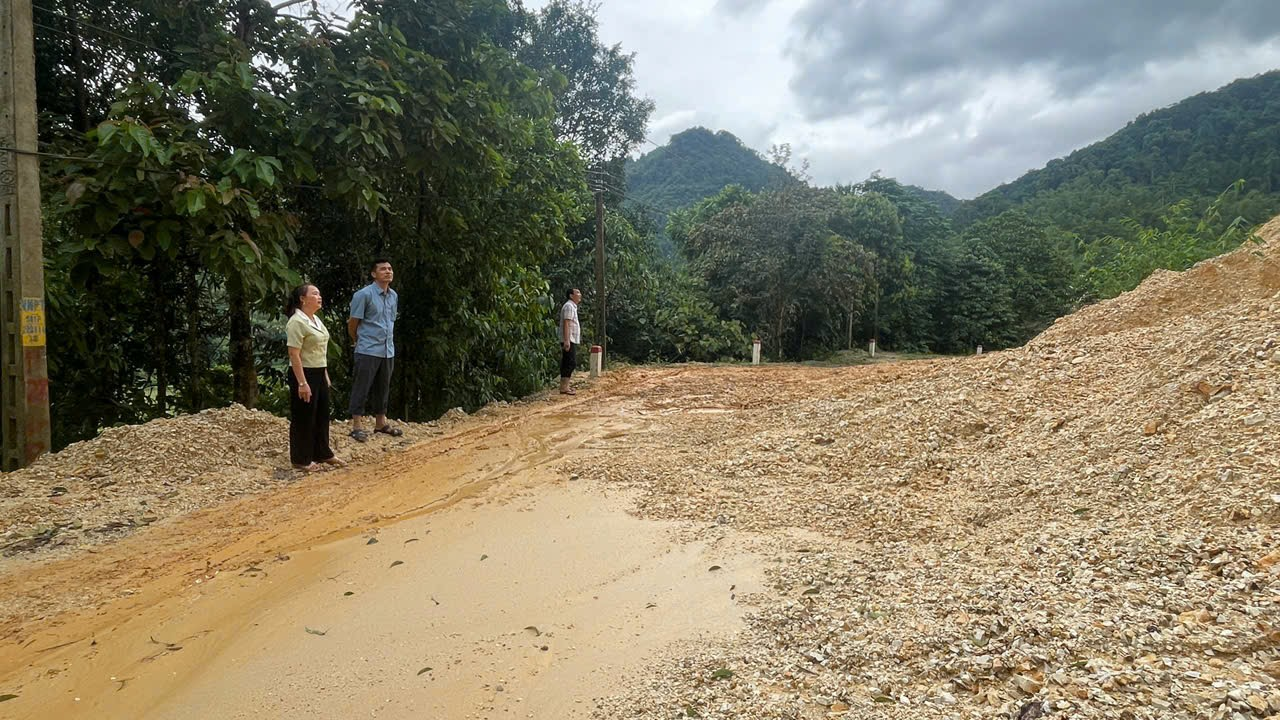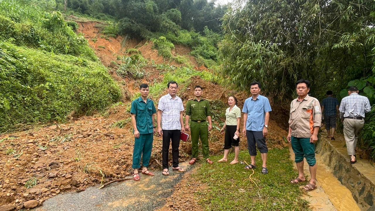 Phó bí thư Đảng ủy, Chủ tịch UBND xã và đoàn kiểm tra tình hình sạt lở taly